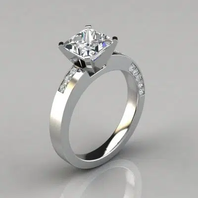 Flat Edged Princess Cut Cathedral Style Moissanite Engagement Ring
