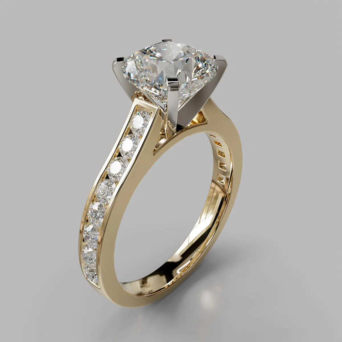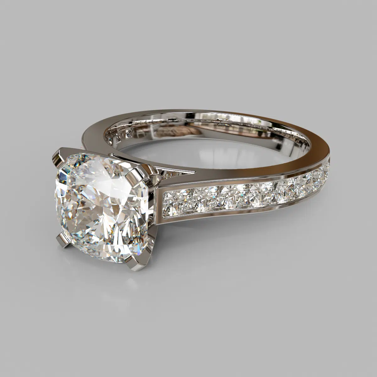 1 review for Cathedral Style Cushion Cut Channel Set Moissanite Engagement Ring