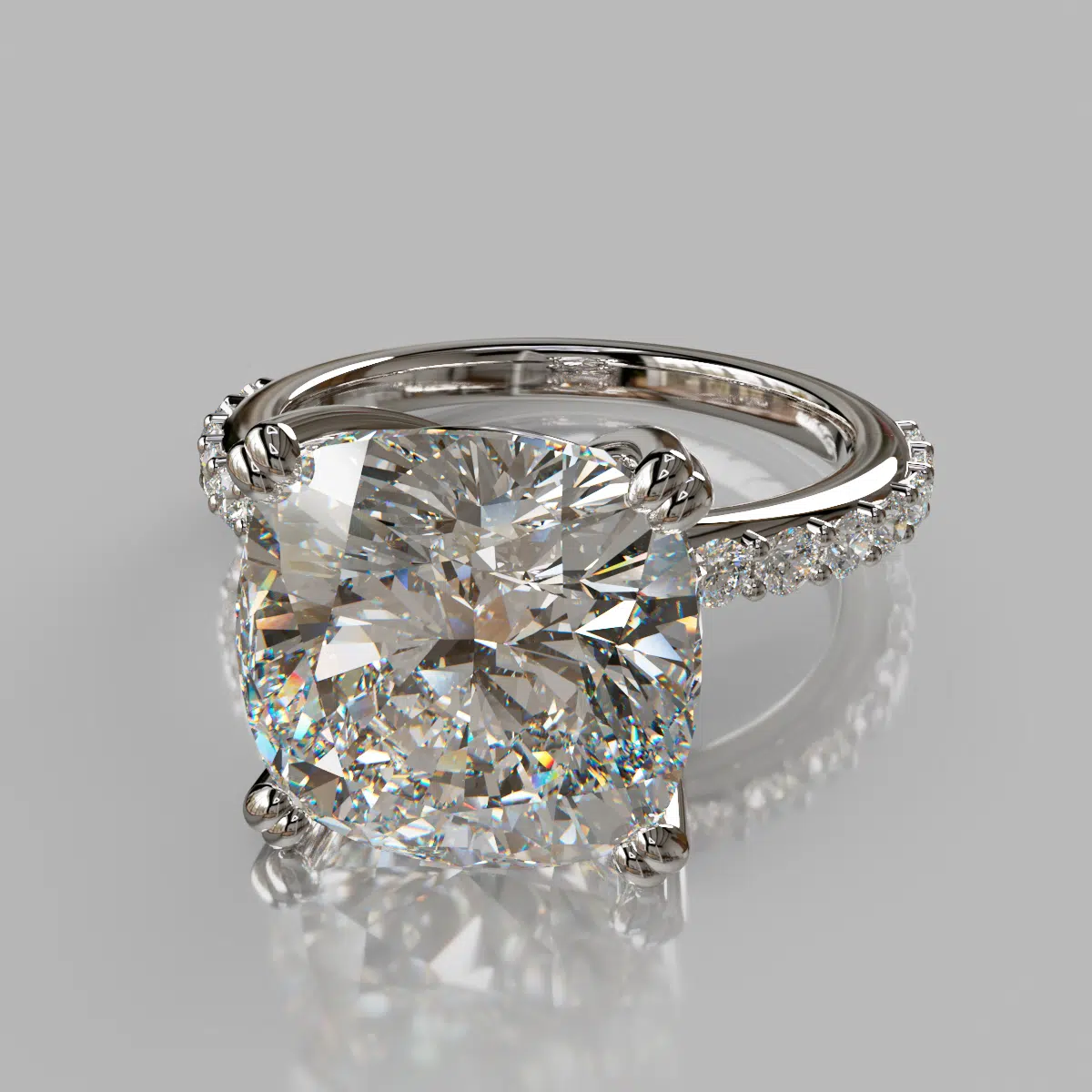 Cushion Cut Moissanite Shared Prong Engagement ring