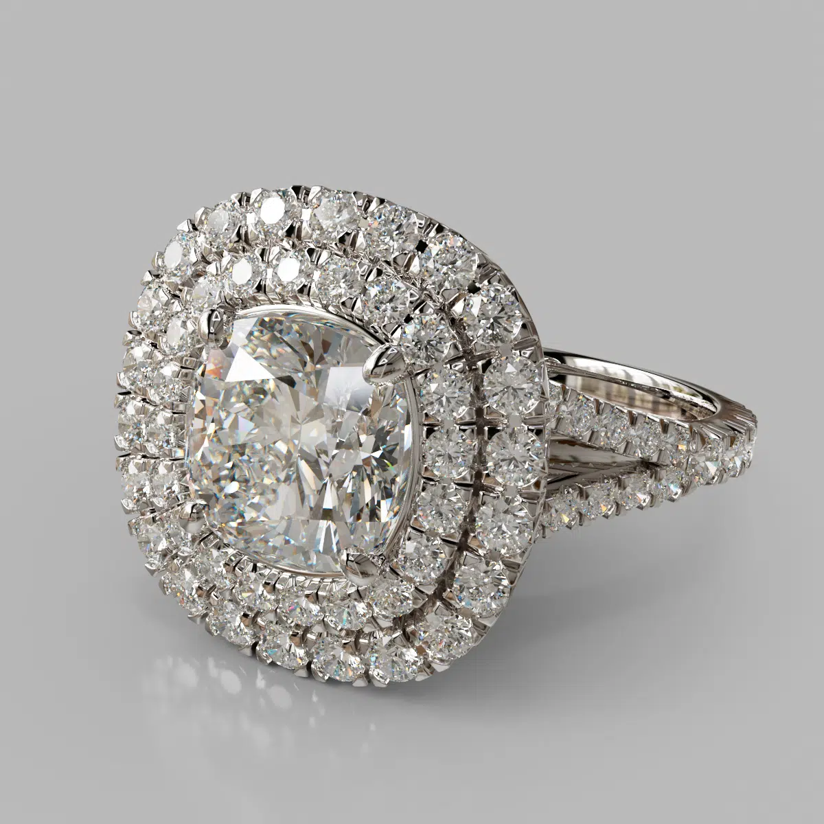 Double Halo Moissanite Cushion Cut Engagement Ring