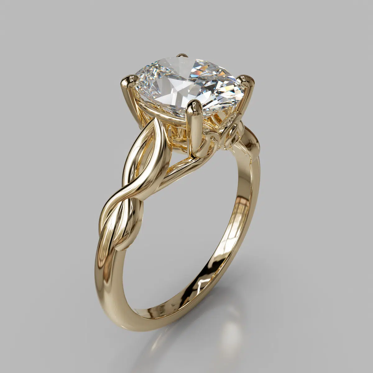 This Double Split Shank Oval Cut Solitaire Moissanite Engagement Ring is available in White, Yellow or Rose Solid Gold (14K or 18K) and also in Platinum.