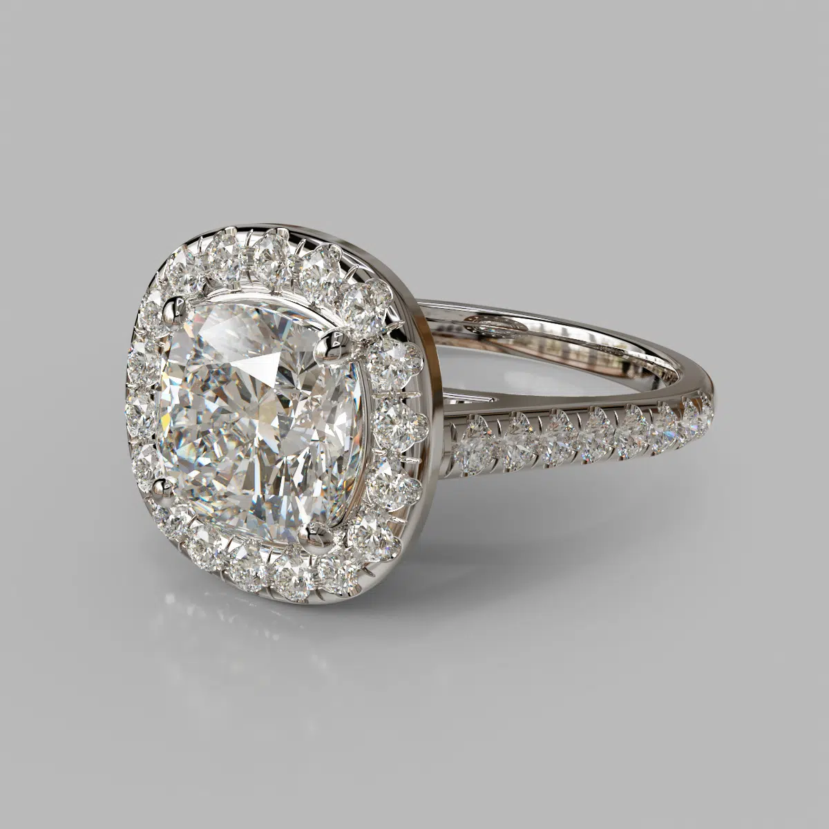 3 reviews for Floating Halo Cushion Cut Moissanite Engagement Ring