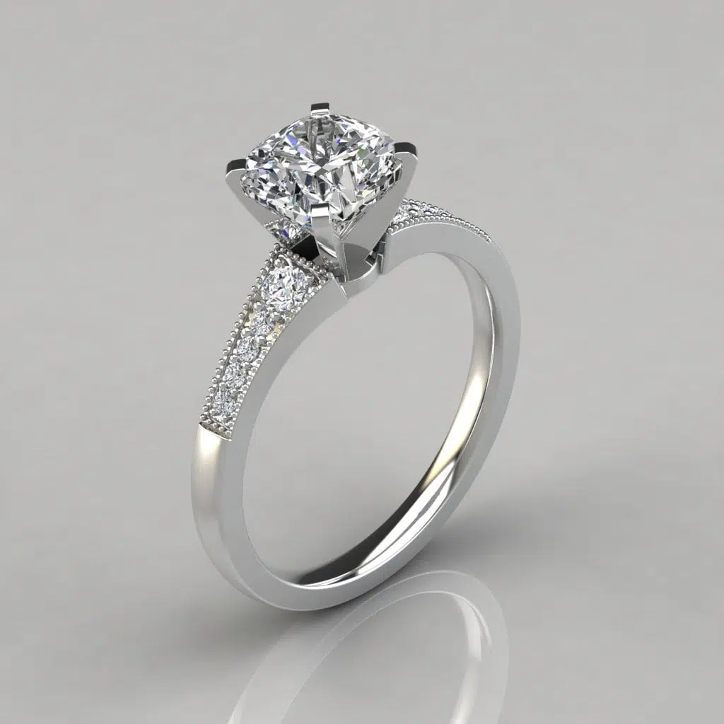 Graduated Milgrain Cushion Cut Moissanite Engagement Ring