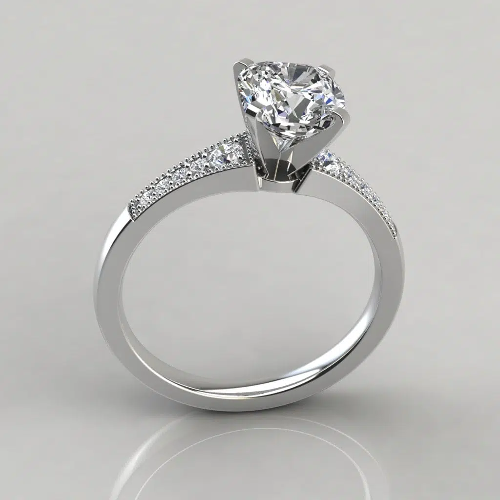 Graduated Milgrain Round Cut Moissanite Engagement Ring