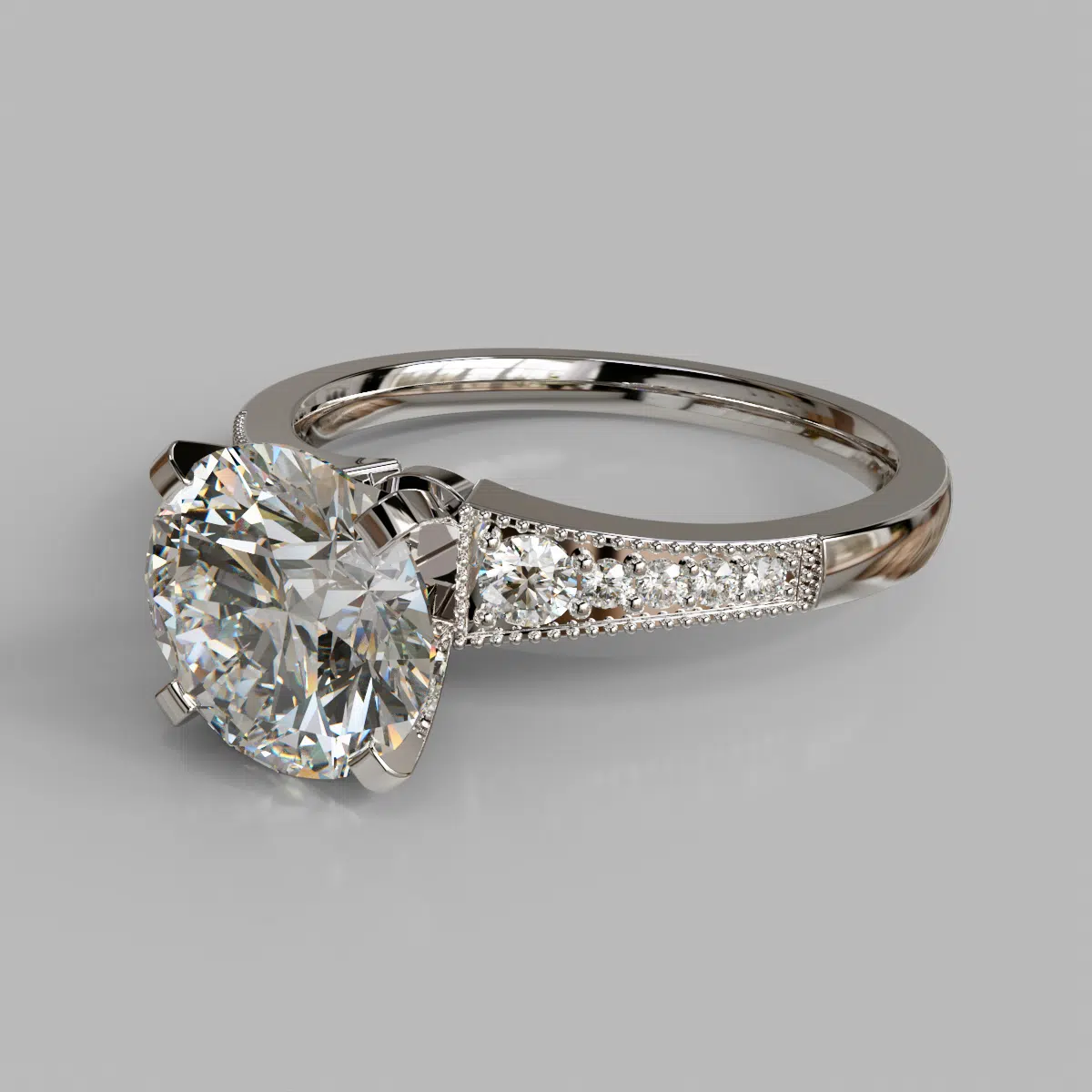 Graduated Milgrain Round Cut Moissanite Engagement Ring