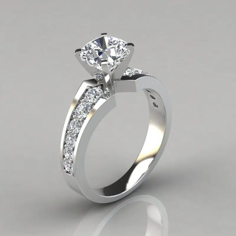 Graduated Pave Cushion Cut Moissanite Engagement Ring