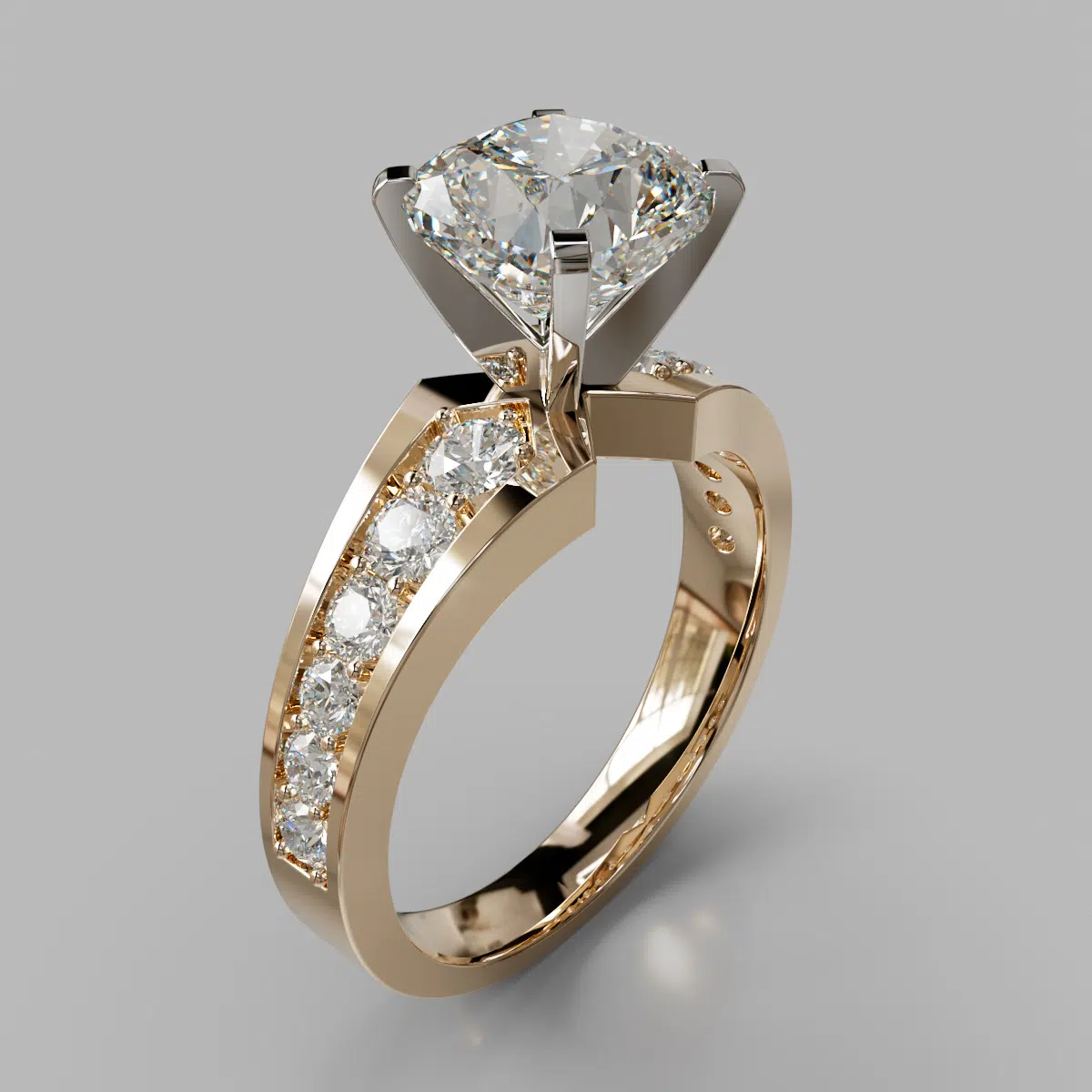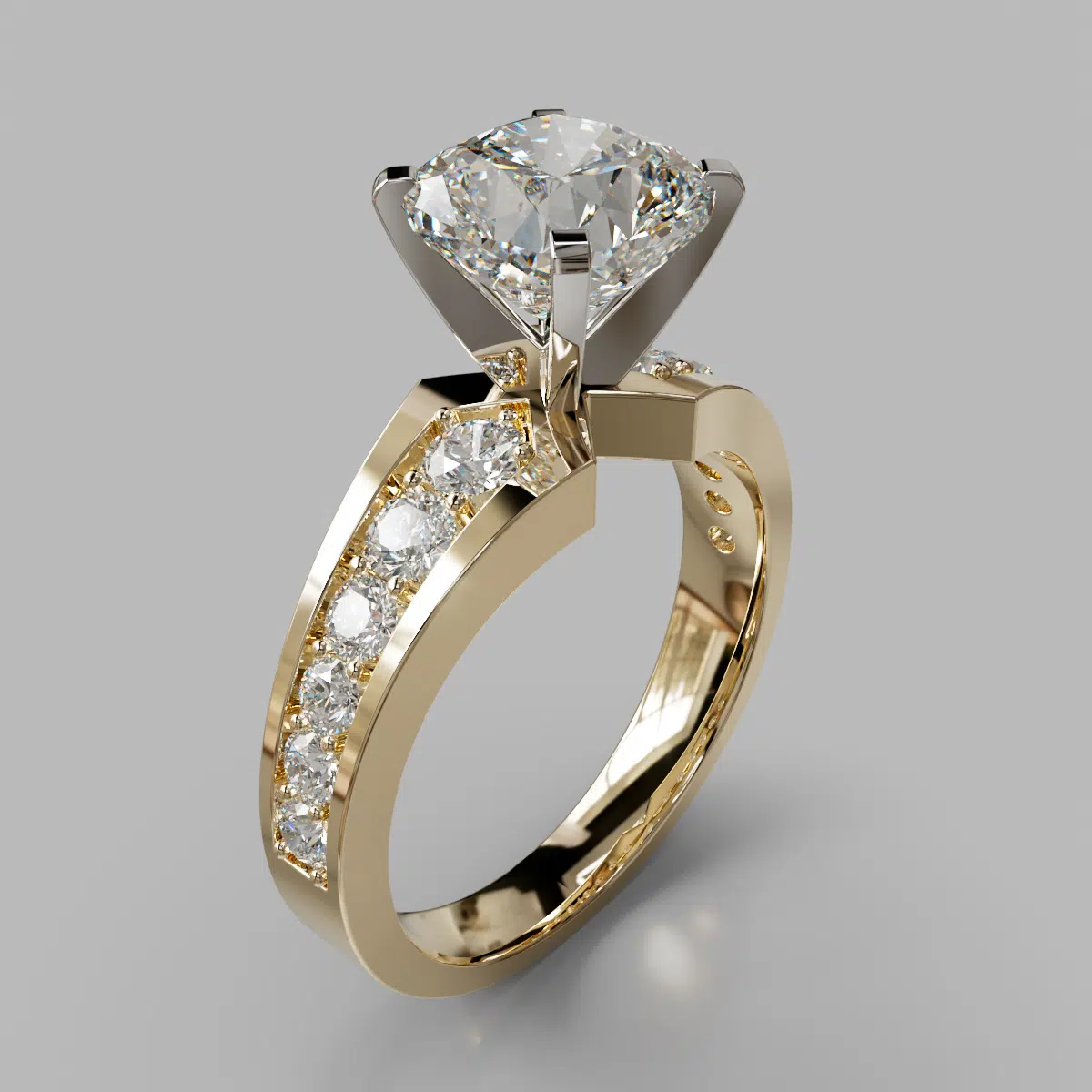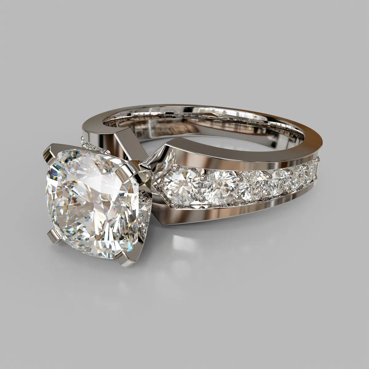 Graduated Pave Cushion Cut Moissanite Engagement Ring