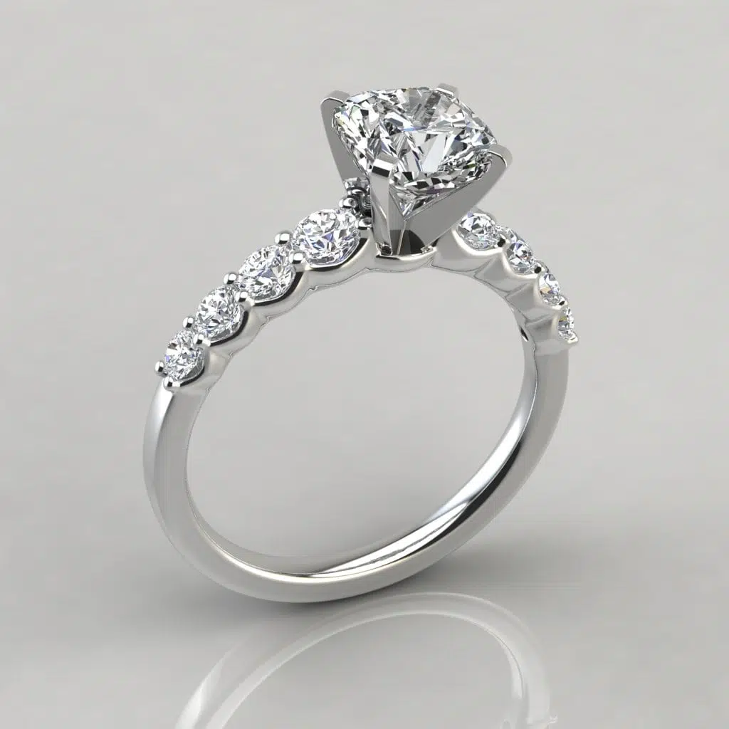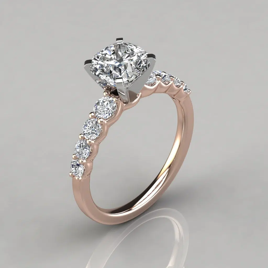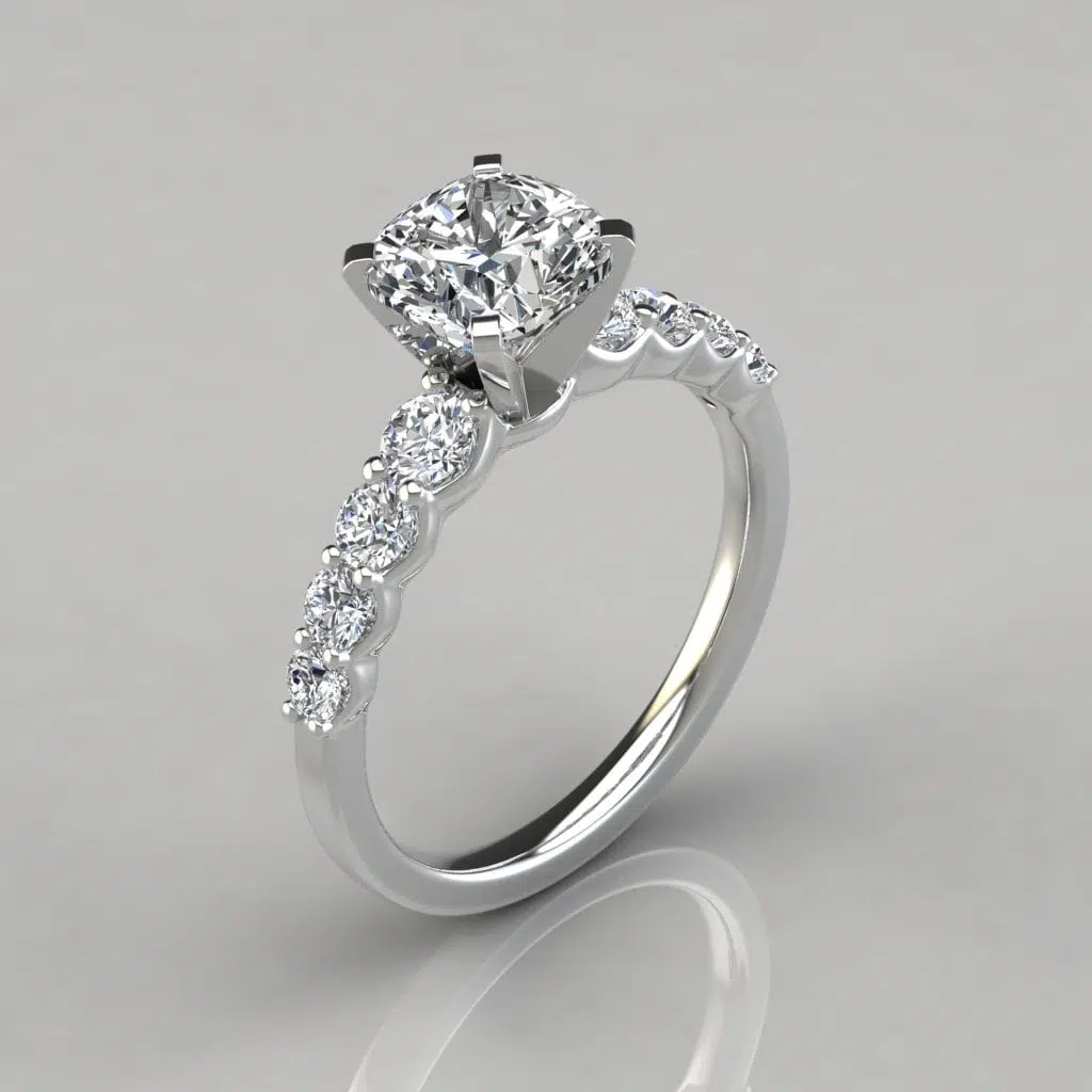 Graduated Side Stone Cushion Cut Moissanite Engagement Ring