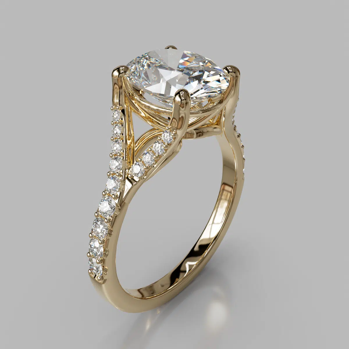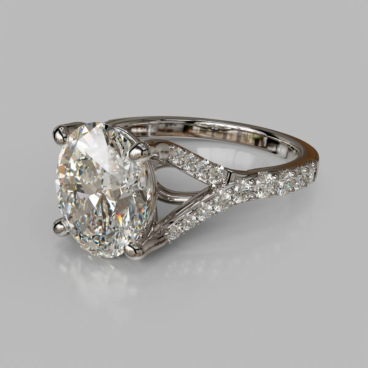 Graduated Split Shank Oval Cut Moissanite Engagement Ring