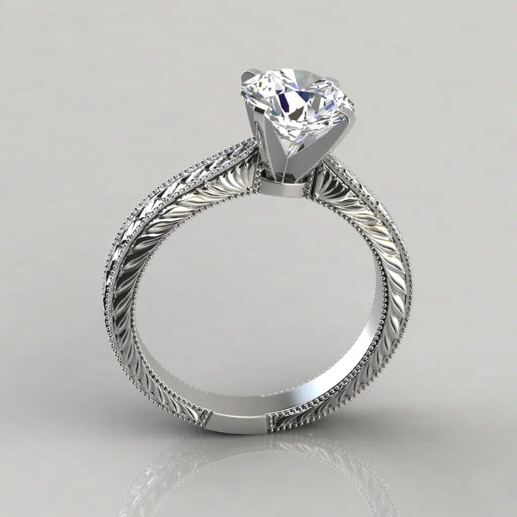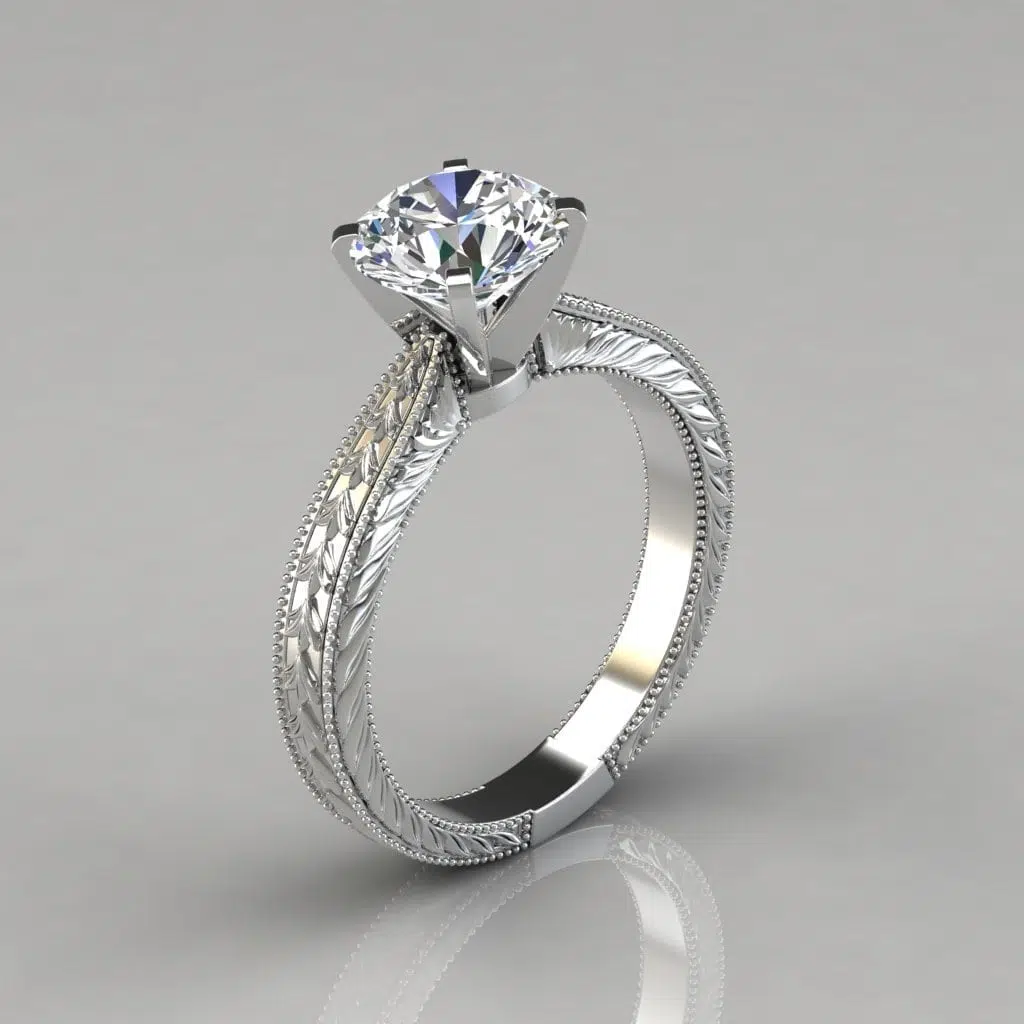 Hand Engraved Solitaire Moissanite Engagement Ring