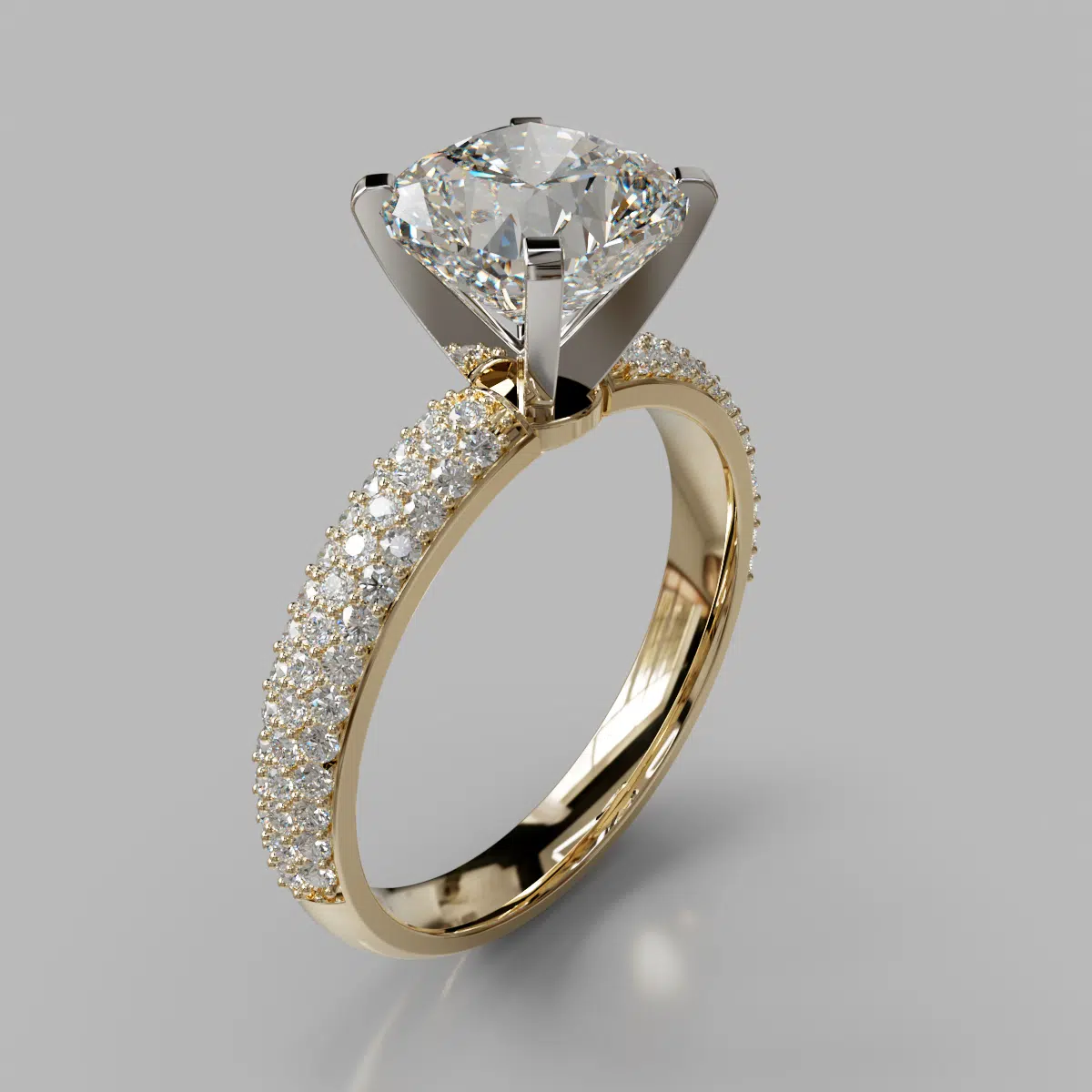 Micro Pave Cushion Cut Moissanite Engagement Ring