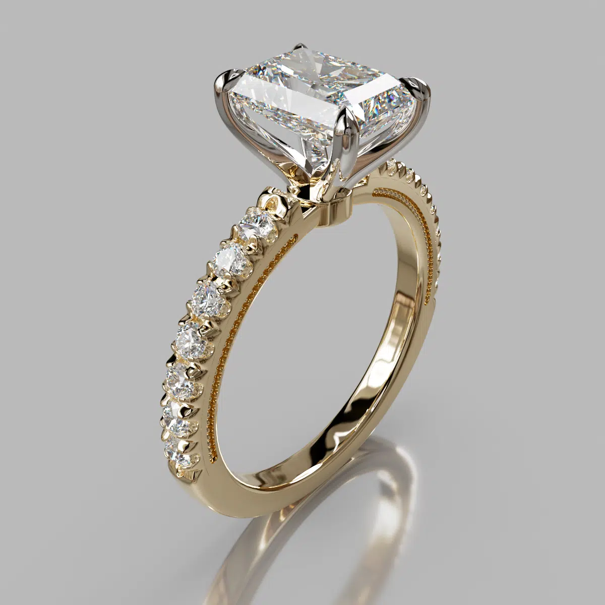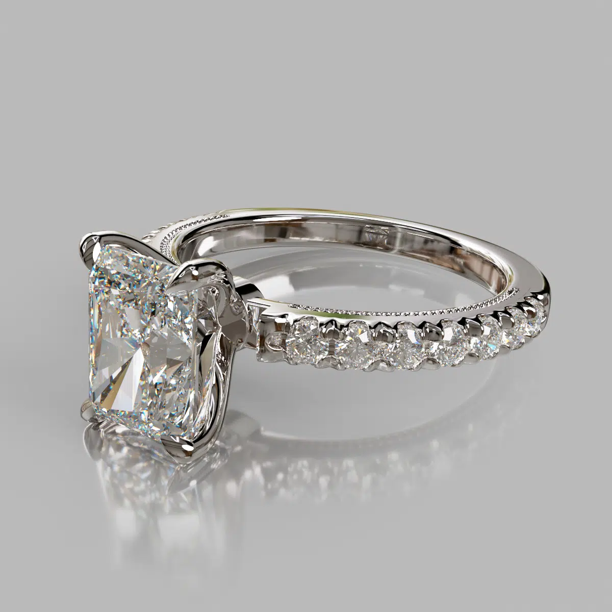 Milgrain Radiant Cut Moissanite Engagement Ring