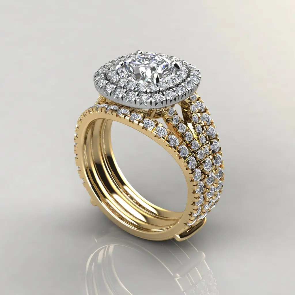 Moissanite Double Halo Engagement Ring and Matching Enhancer Ring Set