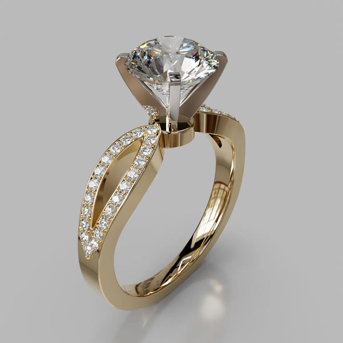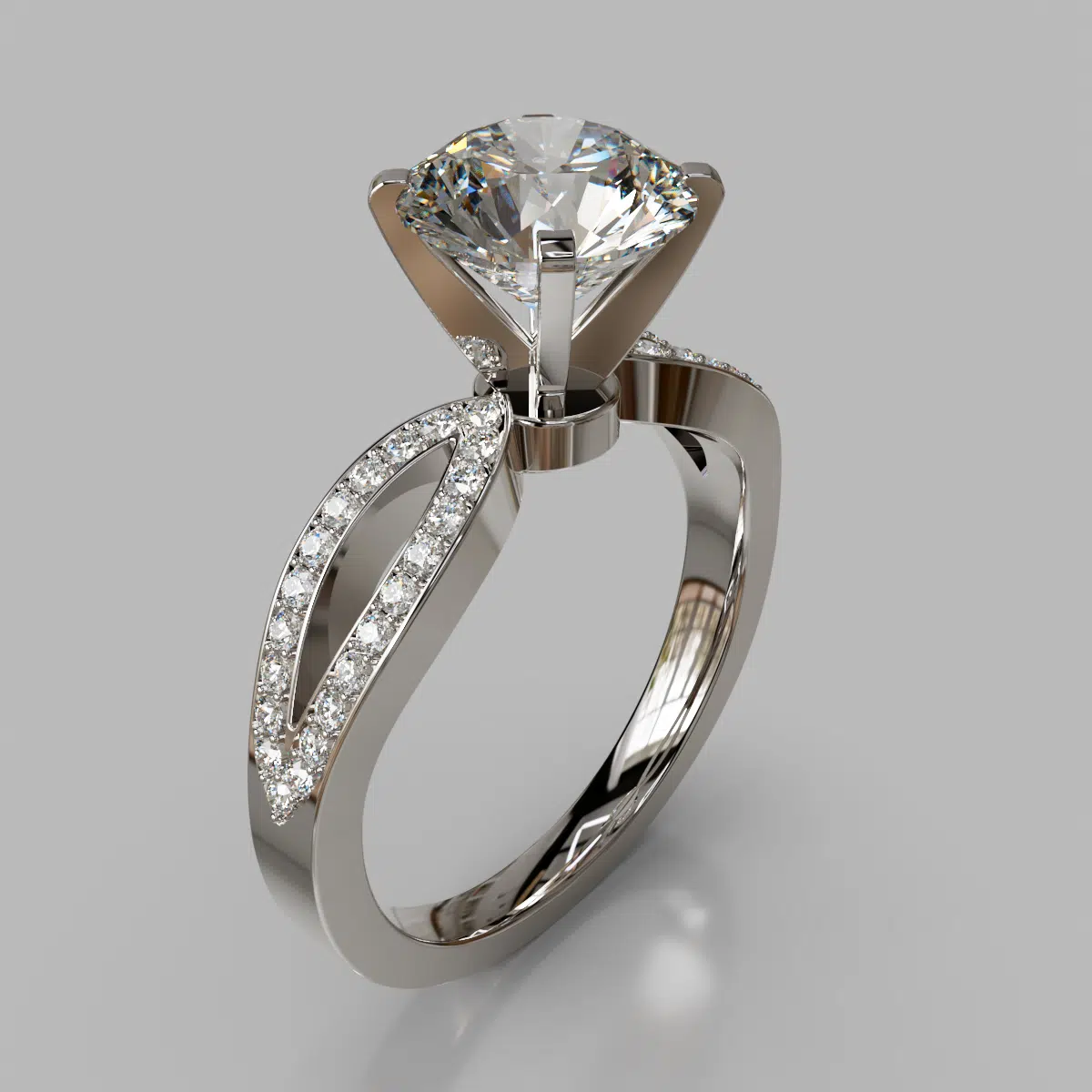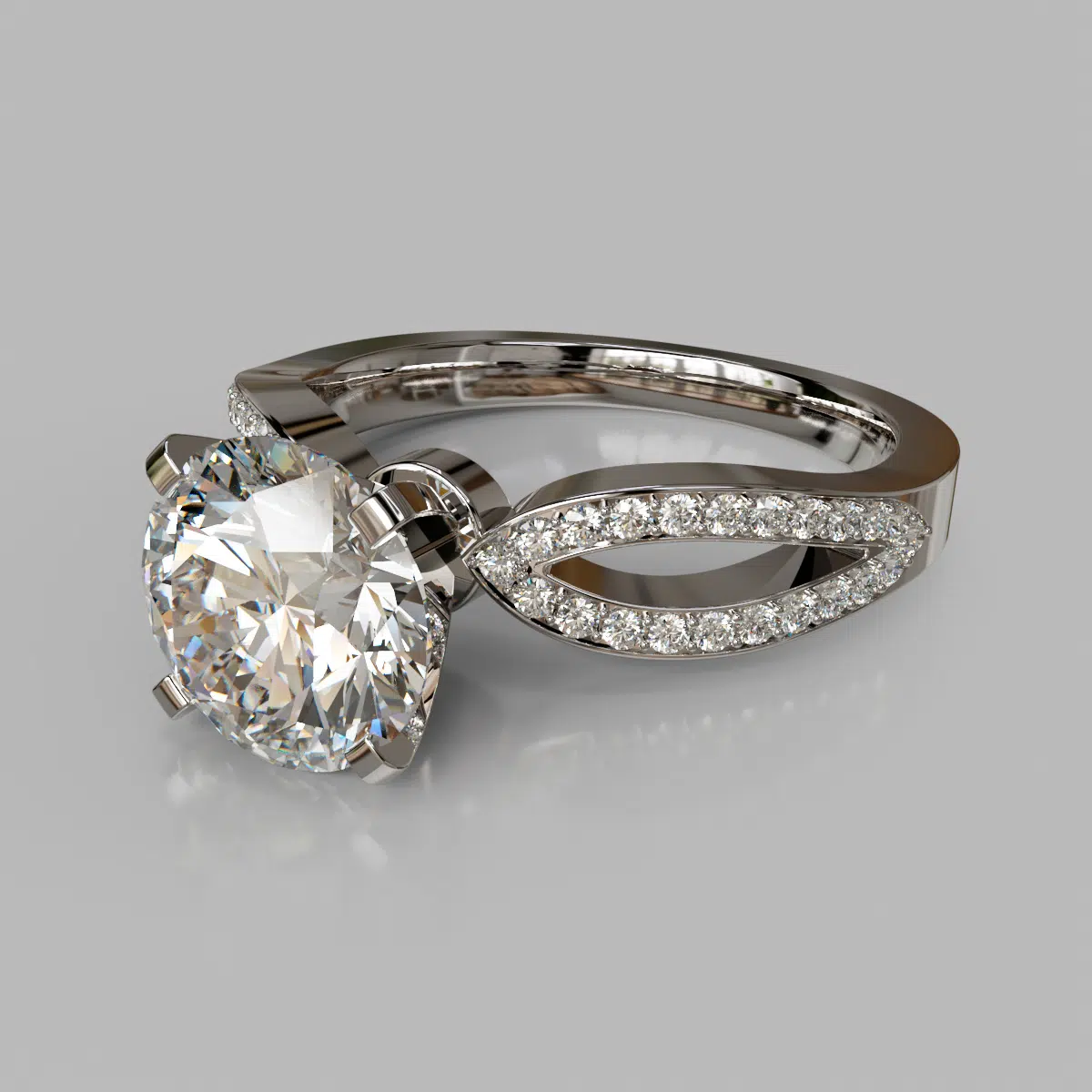 Moissanite Split Shank Engagement Ring With Accents