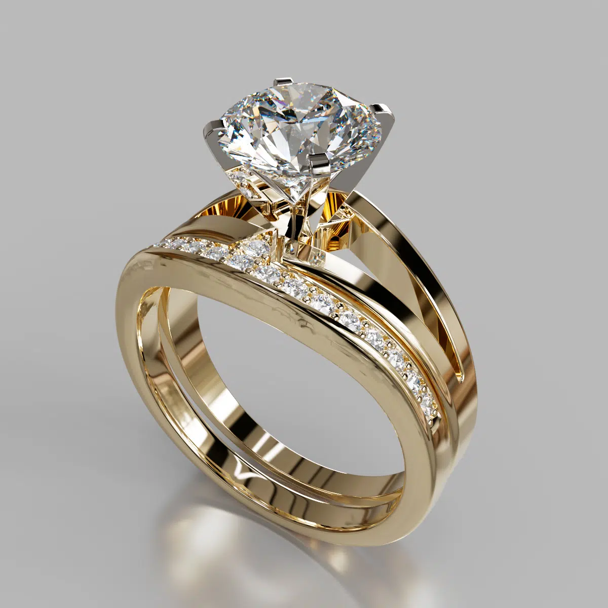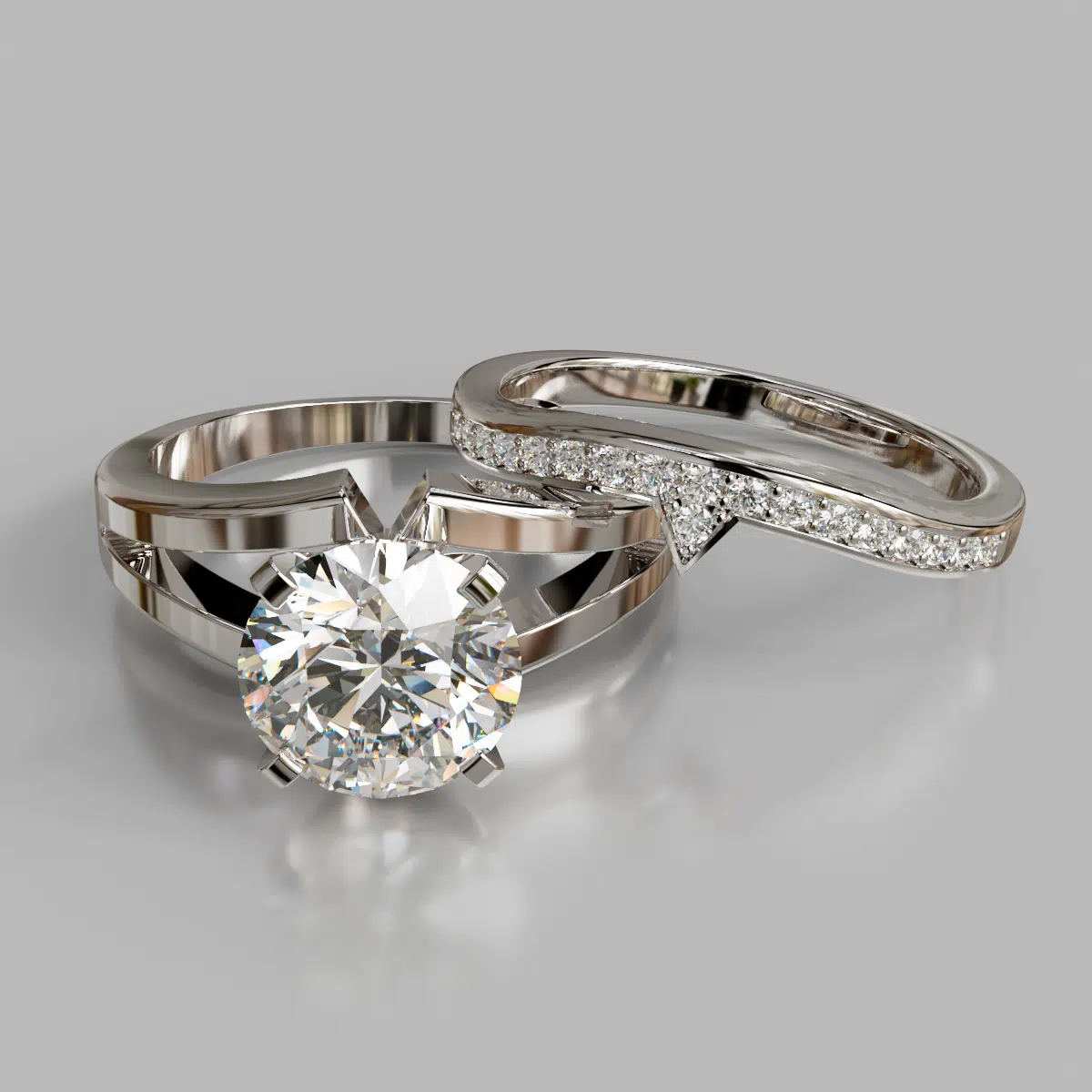 Moissanite Split Shank Solitaire Round Cut Bridal Set