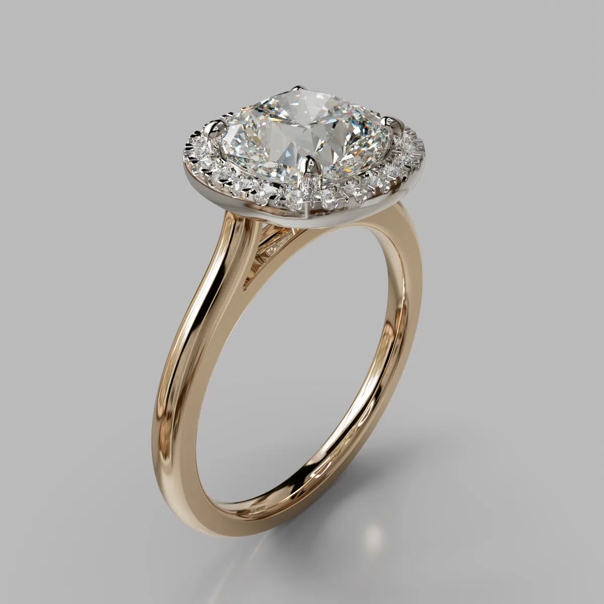 Plain Shank Halo Cushion Cut Moissanite Engagement Ring
