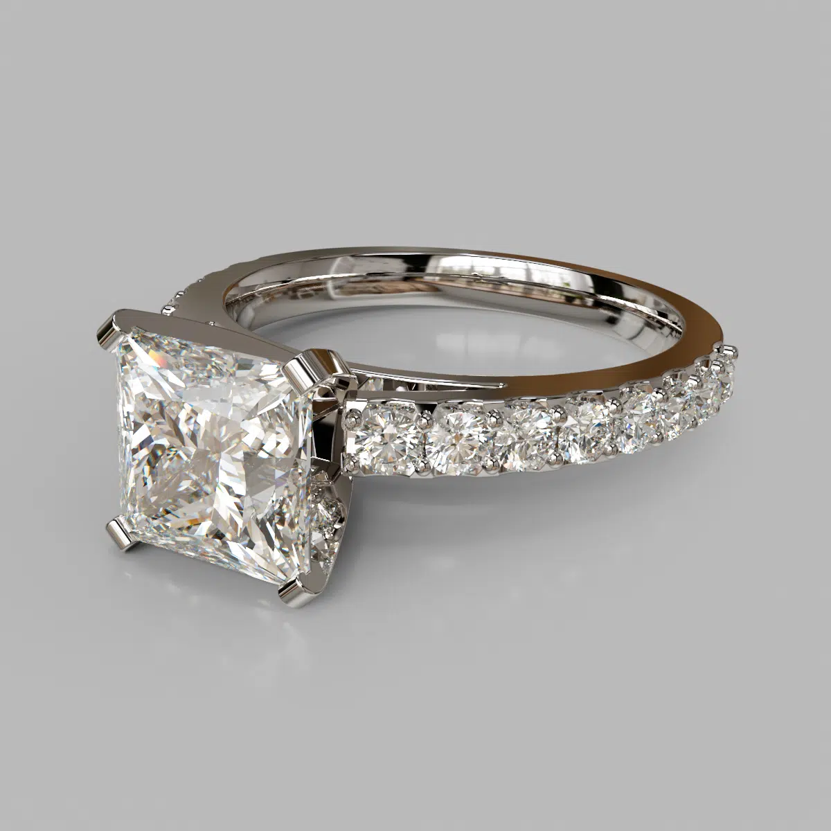 Princess Cut Cathedral Style Moissanite Engagement Ring
