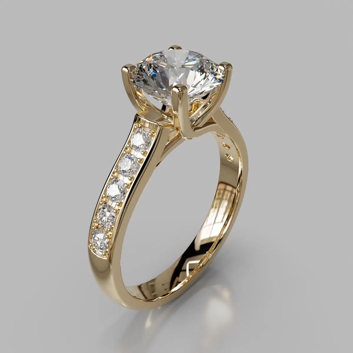 The ring can be customized to your exact specifications to accommodate a center stone from 1.00 to 3.00 carats and it comes as pictured with an additional 10 round brilliant cut side stones, in total carat weight of 0.35 Ct.