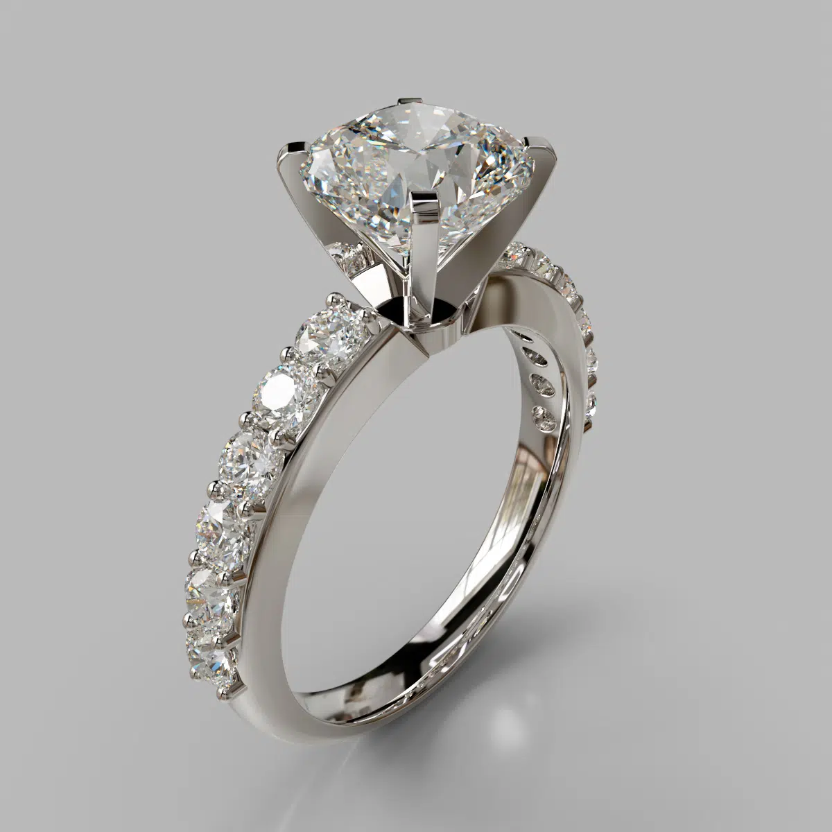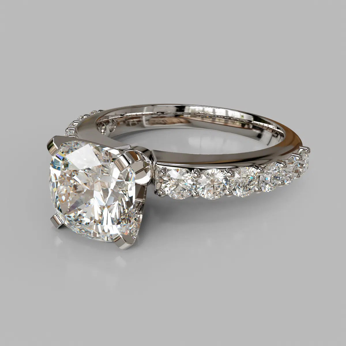 Shared Prong Cushion Cut Moissanite Engagement Ring