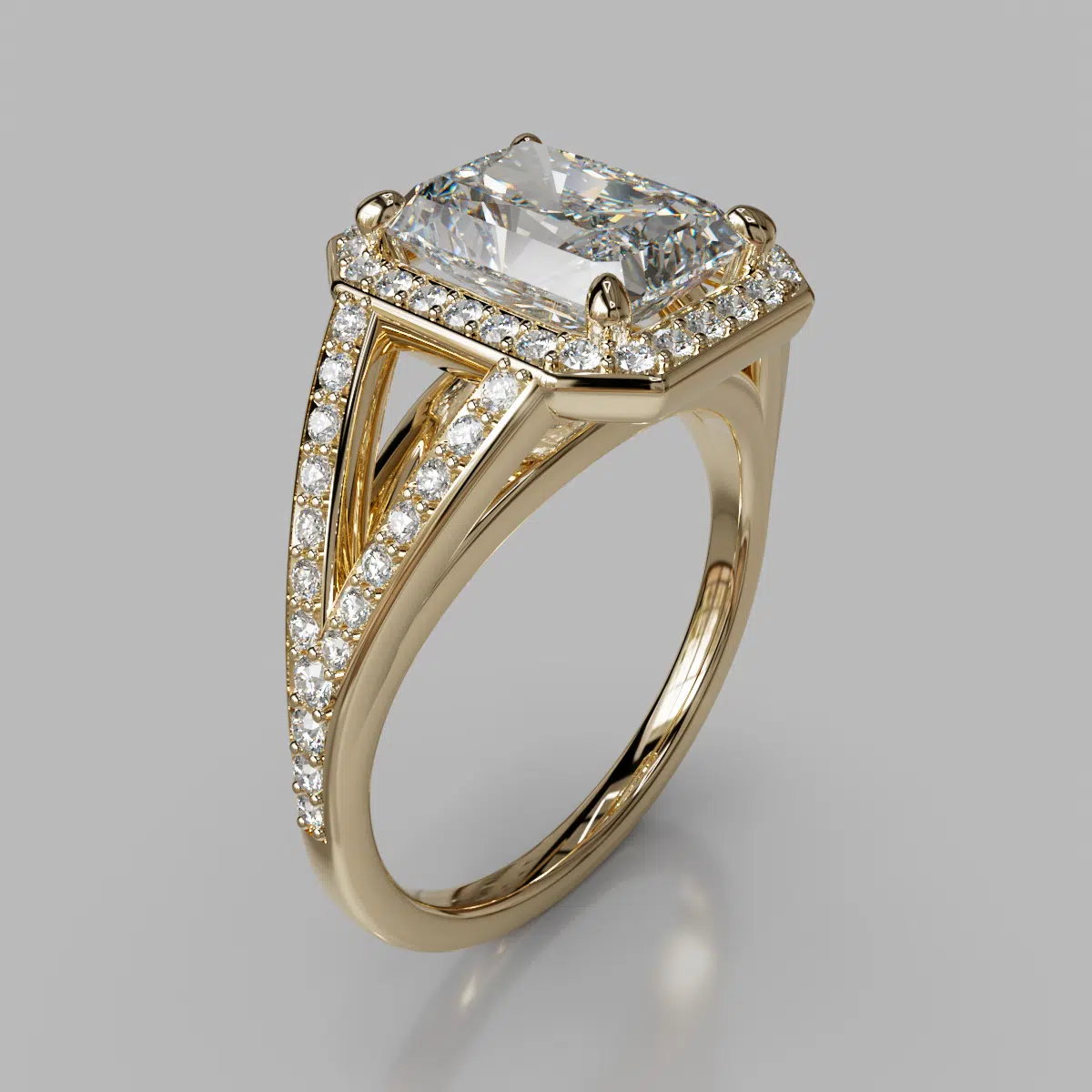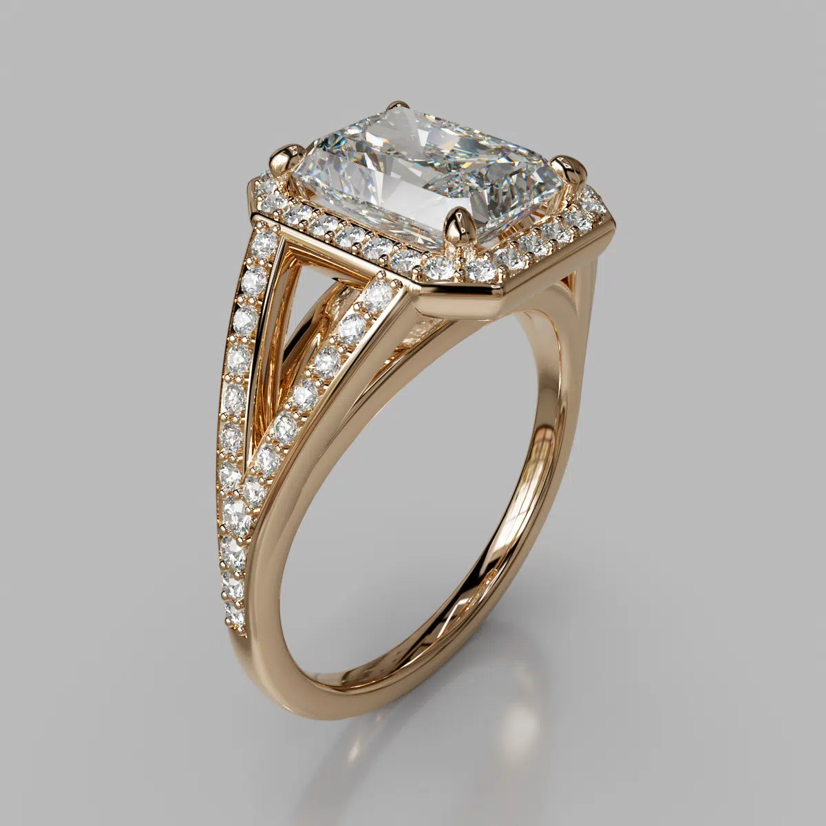 Split Shank Floating Radiant Cut Moissanite Engagement Ring