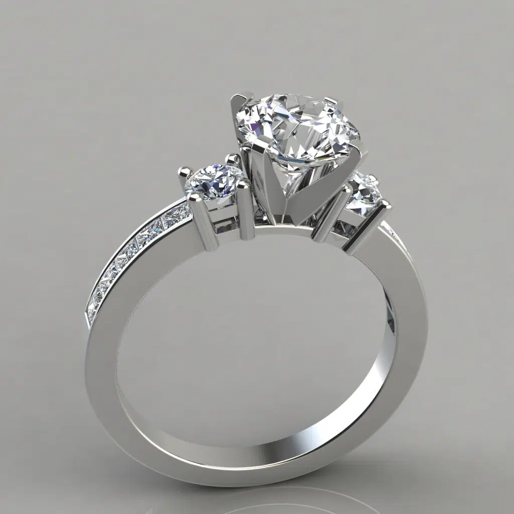 Three Stone Round Brilliant Cut Moissanite Engagement Ring