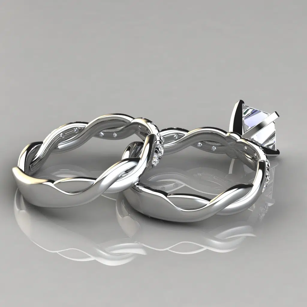 Twist Princess Cut Moissanite Engagement Ring and Wedding Band Set