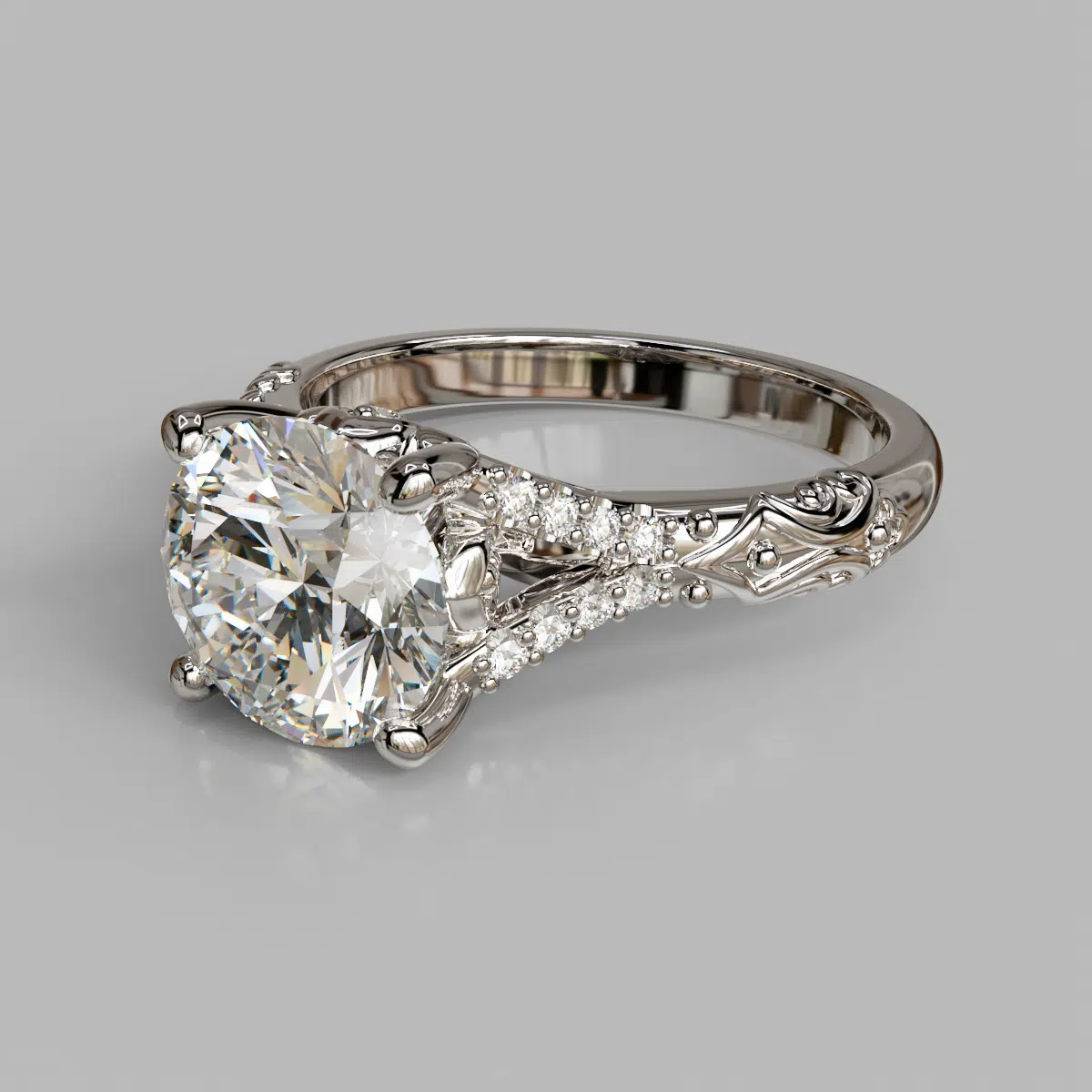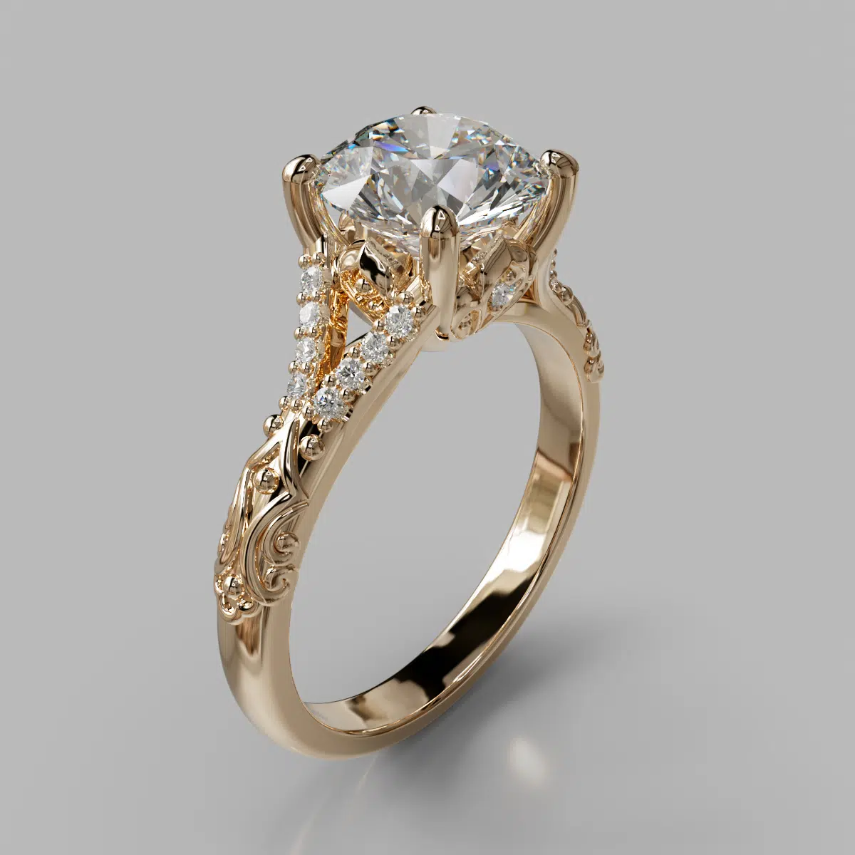 Vintage Inspired Round Cut Moissanite Engagement Ring