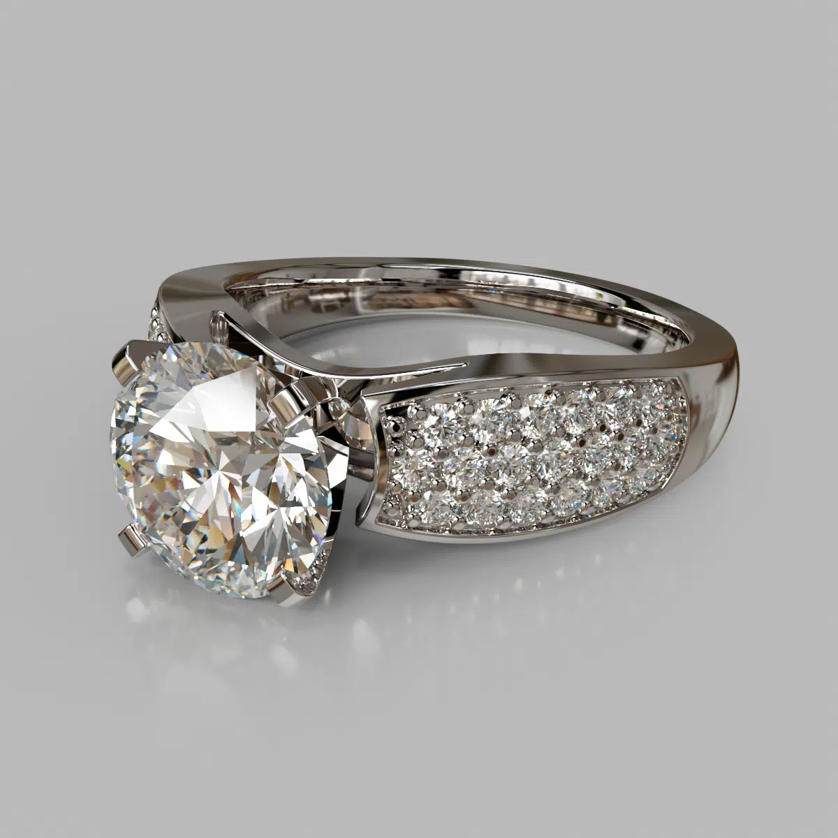 The ring can be customized to your exact specifications to accommodate a center stone from 1.00 to 3.00 carats and it comes as pictured with an additional 44 round brilliant cut side stones, in total carat weight of 0.22 Ct.